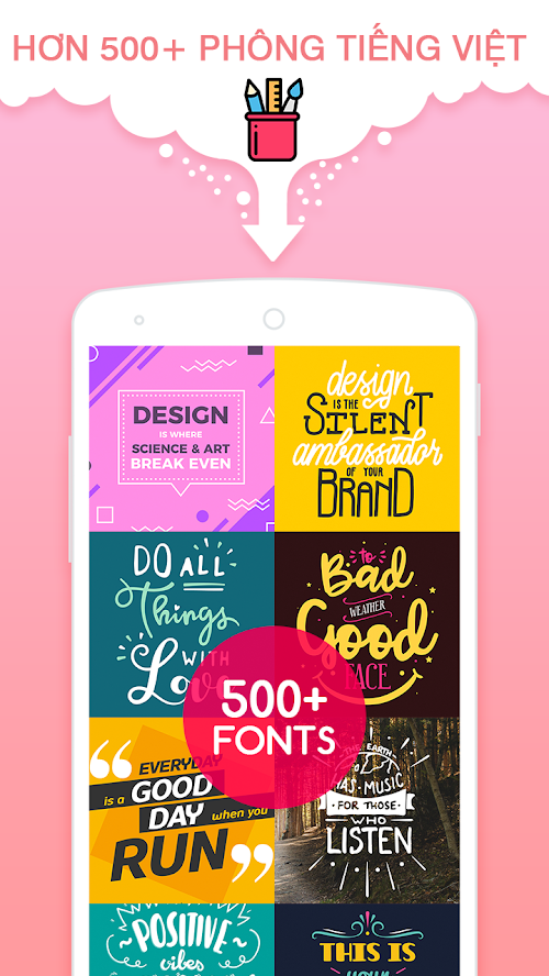 Bạn muốn Chèn chữ lên ảnh hay muốn tìm các ảnh tâm trạng và các status hoặc quote để thêm vào vào ảnh của bạn? Đây chính là ứng dụng tốt nhất dành cho bạn để làm việc này với kho ảnh tâm trạng lên tới 1.000+ ảnh và hơn 5.000 các status, quote có sẵn hoàn toàn miễn phí, thỏa sức sáng tạo của bạn và đặc biệt là cực kì dễ sử dụng.